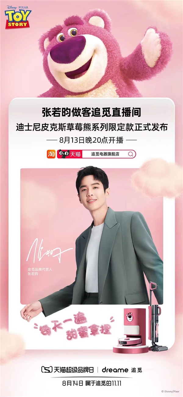 此次天猫超级品牌日,追觅联合迪士尼知名IP草莓熊,推出了一系列限定款产品和周边。