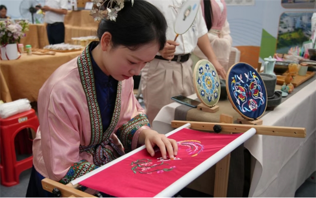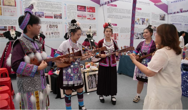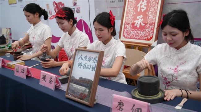 活动现场分为职业教育高质量发展、产教融合、职教出海、技能成才、社会服务和民族文化传承六大展区,智能实训设备、科技作品与数字化教学场景等职教“黑科技”的展示令人大开眼界,厨艺、茶艺等技能和刺绣、扎染等非遗技艺或火热、或优美,学生们把“课堂”搬进活动中,表现出卓越的综合素养。