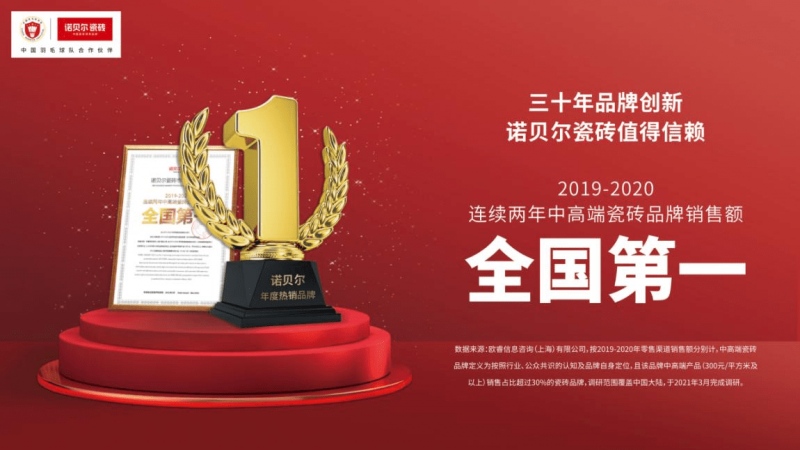 诺贝尔瓷砖获此殊荣,是欧睿国际对中国2020年度全国瓷砖市场深度专项调研的结果。此次调研从行业、公众认知、品牌自身定位三个维度进行,还有一个硬性标准该品牌中高端产品(300元/平方米及以上)销售占比超过30%的高端瓷砖品牌。