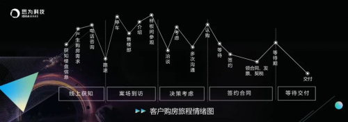 在市场调研的基础上,思为绘制了一张“客户购房旅程情绪图”,其中最明显的情绪高潮,我习惯称之为“心跳点”,出现在客户线上看房的过程中。