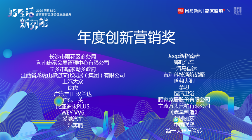 致敬创新,见证荣耀时刻!2020网易&ECI睿享营销品牌价值态度盛典榜单揭晓